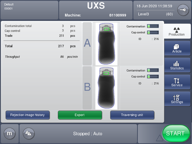 Adjustment is made by means of an integrated servo drive. A wide range of product heights is thus not a problem, nor are complex liquid or solid fillings. At the same time, software optimized for inspection divides each inspected product into several individual segments. No foreign body is left undetected.