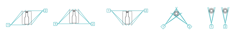 Five possible arrangements of the beams for cans and bottles