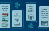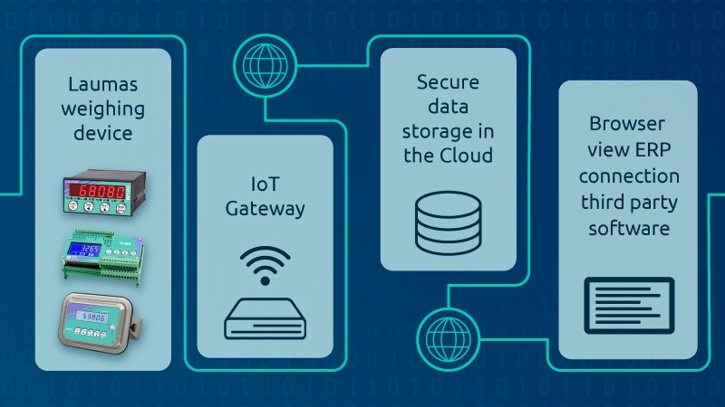 Compatible LAUMAS weighing instruments transmit the data to the cloud through an IoT gateway, with which they are connected via a serial connection.