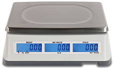 Detecto Scale (USA) - DETECTO’s low-profile D series price computing scales offer up to 99 easy-to-add PLUs for fast reference (14 direct quick keys and 85 indirect PLUs). The D series displays Weight, Unit Price, and Total Price on the front and rear backlit LCDs (up to six 0.5-in/13-mm high digits) for both the operator and customer to view simultaneously. The scale offers a dual power source of rechargeable battery pack and 110/120VAC 50/60 Hz adapter (included) for reliable use at farmers markets, delis, bakeries, candy and coffee shops, convenience stores, produce markets, and hardware stores. Auto Shut-off, Sleep, and Backlight Off modes extend the retail scale’s battery life.