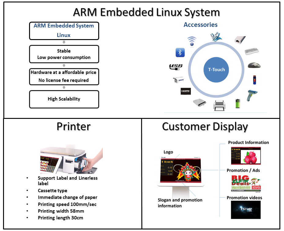 T-Touch P10 series networking capability allowing for using T-Scale’s back office management software for to make the updates from the back office and networking. User-friendly back office software allowing to create customized labels, UI (User Interface), Product updates , promotional video & pictures updates, report management, data import & export etc.