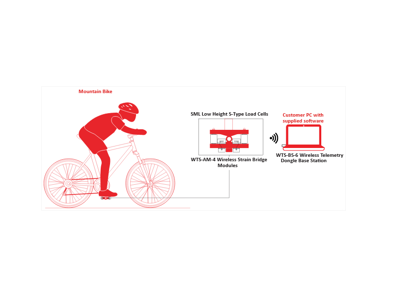 For a bike manufacturer testing the functionality of its power pedals, Interface supplied a full wireless system solution to measure how much force the cyclist pushes down onto the bike pedals. The solution included four Model SML Low Height S-Type Load Cells installed within the bike’s pedals. The four SMLs were paired with our Wireless Telemetry System components, two WTS-AM-4 Wireless Strain Bridge Transmitter Modules, which transmit the force data from the cyclist to the WTS-BS-6 Wireless Telemetry Dongle Base Station Dongle connected to the customer’s PC or laptop. Interface also provided the software needed with their wireless products. Using this system, the bike manufacturer was able to measure the pedal power applied by the cyclist. The customer was also able to measure and log the data wirelessly transmitted to their PC computer.