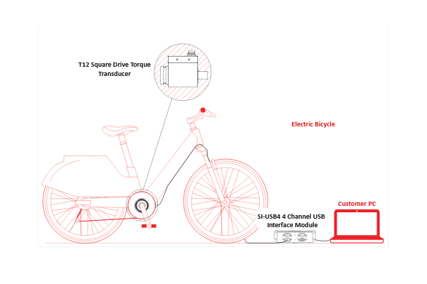 The manufacturer needed to test the torque on their electronic bicycles. They also needed a torque sensing system that measures how much force the bike rider is pedaling onto the pedals, because this determines how much electric power the bike’s motor generates. To address this challenge, Interface suggested installing the Model T12 Square Drive Torque Transducer where the pedal assist sensor would normally be. The T12 Square Drive Torque Transducer’s results could then be recorded, graphed, and logged using the SI-USB4 4 Channel USB Interface Module when connected to the customer’s PC. This allows the e-bike manufacturing company to successfully test the torque on their electronic bicycles with Interface’s products and instrumentation.