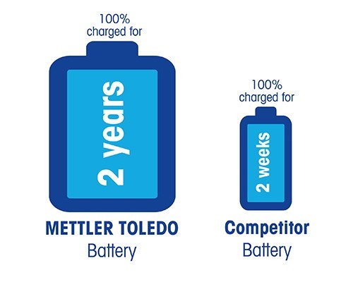 Not all cable-free floor scales are created equal. Only METTLER TOLEDO can offer a scale that eliminates charging stations, failure prone rechargeable batteries and the associated downtime. Our battery holds its charge for an incredible 2 years of use – saving you on energy cost, and keeping your equipment up and running when it matters most.