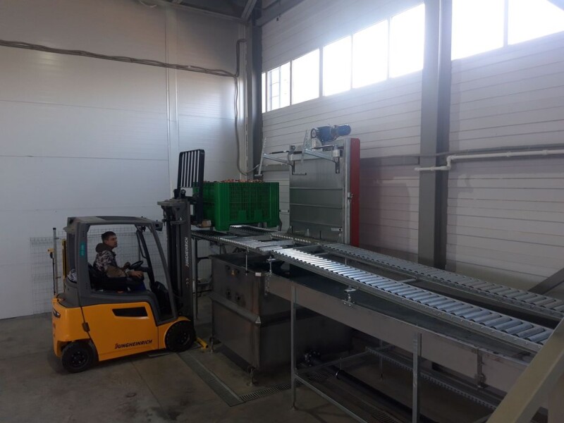 The line was equipped with three packing tables and a dry fruit box filler. In addition, we have minimized downtime thanks to the structure adapted to the transport of cardboard boxes from the mezzanine for packing to the tabletops. Operators do not have to be distracted from work to put fruit cartons on the production line.