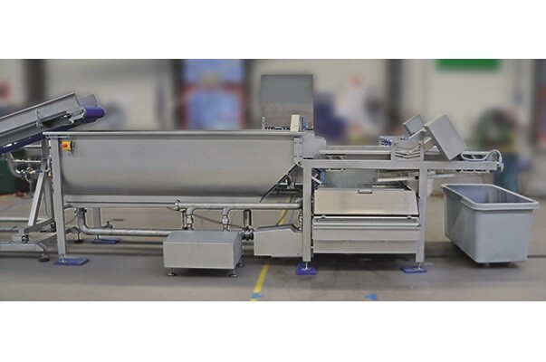 For this reason, the washing machine has a time controlled retaining flap which automatically controls the retention time of the products in the wash tank. This means when using cleaning agents, the fully adjustable contact time a product has with water can be guaranteed. This is a fundamental step for hygiene in further processing which is key in preventing cross contamination and premature spoilage of the end product.