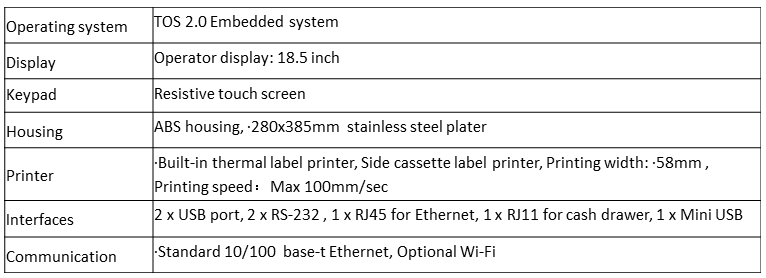 User friendly Resistive Touch Operating display, 18.5” HD Touch Self-service Operational display with the resolution 1366x768. Self Service Operation, Self service scale allowing for to operating the customer without any help of the operator, display and audio messages will guide to choose the right item for to get the label. It’s reducing labor cost and giving high end shopping experience.
