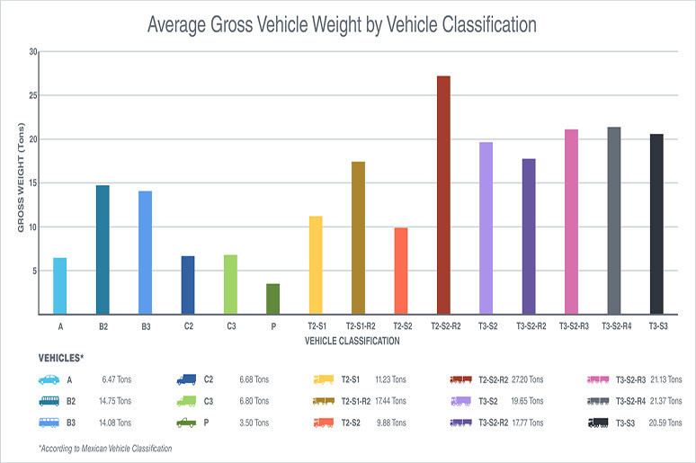 There are only single lanes on most of the route from the coast into the interior of the country, and traffic largely consists of heavy commercial vehicles such as tankers and trucks – both with and without trailers – traveling at average speeds of 90 km/h. Two Kistler Lineas sensors at each measuring station ensure that the axle load and total weight of every vehicle are determined accurately. The new Weigh In Motion system delivers a precise analysis of route utilization by vehicle type, and it registers the axle load and total weight of all vehicles (see the graphic). In the period from August to September 2018 alone, the system identified 135 vehicles that exceeded the maximum weight of 59.4 tonnes.